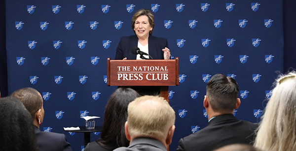 AFT President Randi Weingarten today delivered a major address on the crisis hollowing out the teaching profession—massive disinvestment in public education and deprofessionalization. In her speech at the National Press Club in Washington, D.C., she called for reinvestment and freedom to teach. It was followed by two panels featuring education leaders who laid out pragmatic solutions.